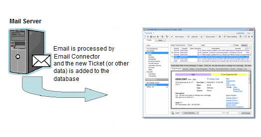 RangerMSP Email Connector pulls incoming emails from your POP3 mail server (including Microsoft® Exchange® servers), processes the email and performs one of the following actions: