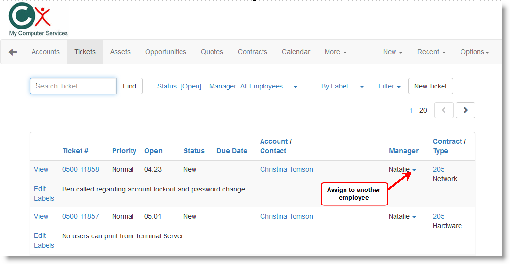 Assign Ticket to another employee using a remote PC/Mac: