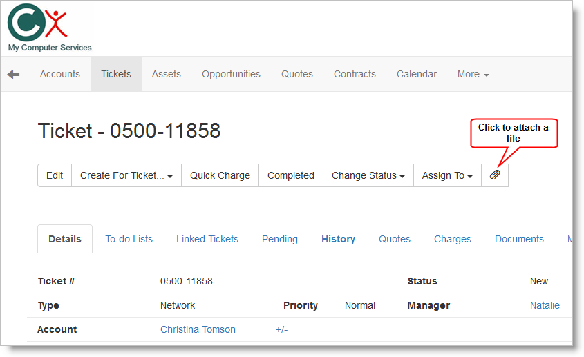 The new Attach option on the Web Interface now allows you to easily attach a file to a Ticket, Account, Asset, Contract, Sales Opportunity of a Knowledge base article. You will be asked to select the file and you’re done!