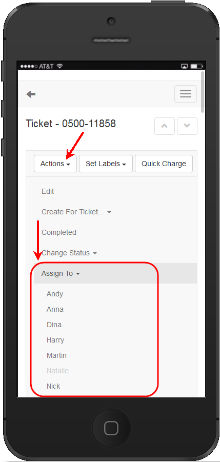 Assign Ticket to another employee using your mobile device: