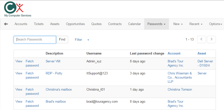 - Manage passwords for Accounts and Assets.