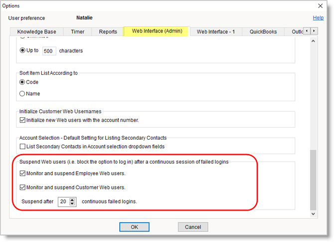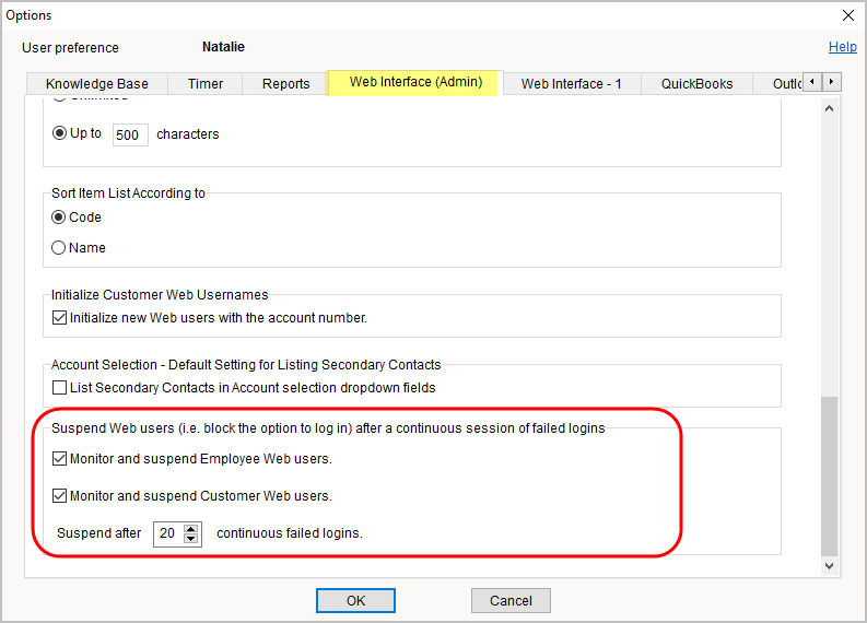 Continuous failed logins may automatically block and suspend Web users. Such users can be reactivated by system administrators. You can turn this feature on/off by visiting Tools > Options > Web Interface.