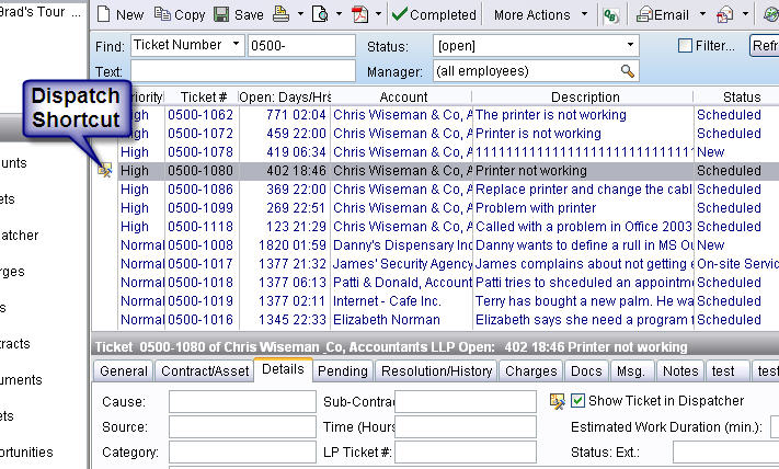 The ideal resolution should be a drag and drop feature that could drag the ticket from the calandar down to the dispatcher, and changing the Status back to New (or another status). If this is not possible, could there be a popup when deleting an appointment where you can change Status and Show in dispatcher