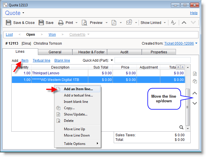 If I am quoting for 3 PCs that are the same but one has an extra hard drive I want to make it clear on the quote that one of them has that extra drive at the minute it is just a list of items.
