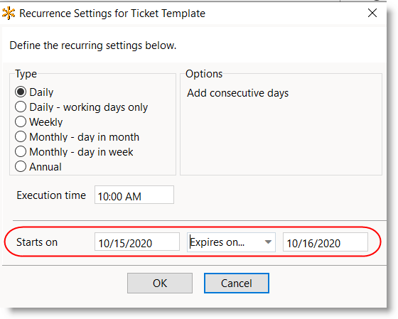 Is there a way to created a Calendar entry that creates a ticket on the scheduled day. No tickets created until the scheduled day.