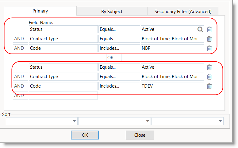 There's no way to group the OR together as indicated above so the logic is wrong. Let me know if I am missing something about the way the filter dialog works.