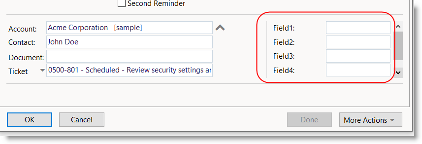 Thank you for the reply. However, our Task entry window does not show the "Fields" you refer to. Our entry only shows from top to bottom: