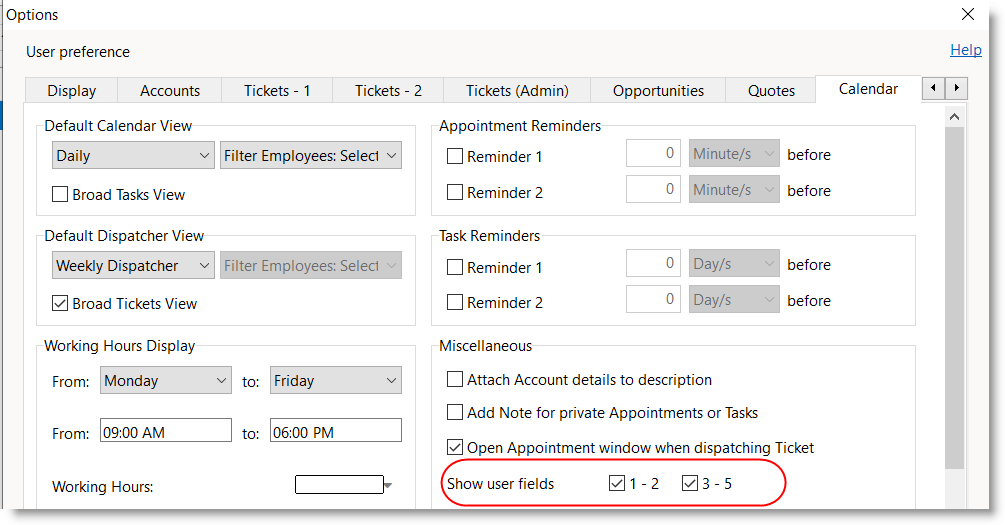 Please visit the Tools menu > Options > Calendar tab and select to show these fields: