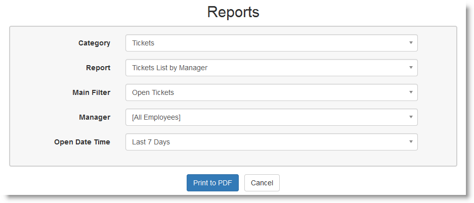 • Open Tickets for all employees opened today/yesterday/this week/last 7 days etc.