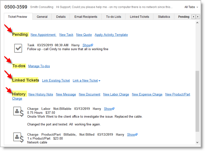Preview tabs enhancement – When visiting the Preview tab of an Account, Ticket, Asset, Contract or Sales Opportunity, you can now click the section title to open the relevant tab.