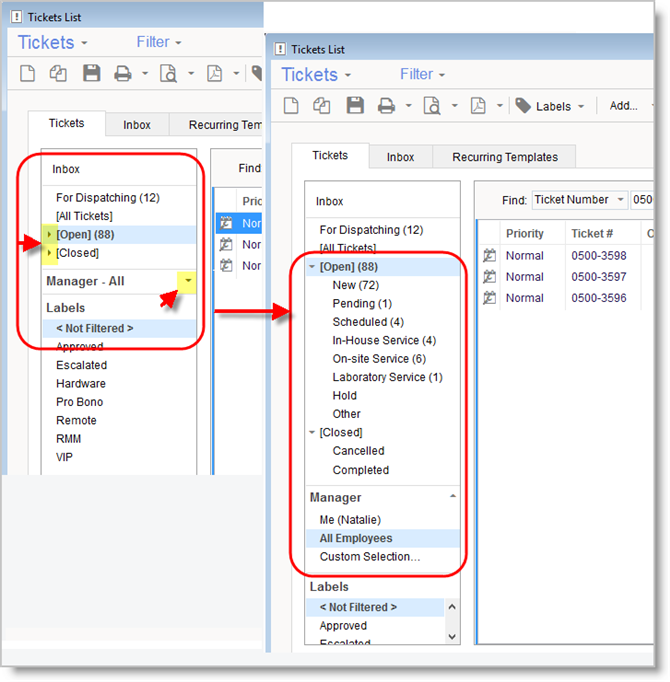Tickets window – Status structure and Manage section on the left side pane are now collapsable.