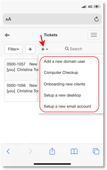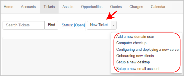 Ticket templates can be used from both the Web portal and the Windows client app:
