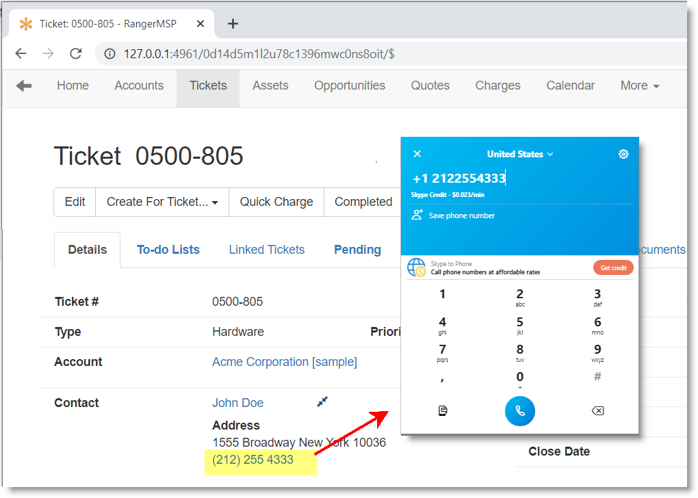 Using a phone system to call customers? The new dialing option within RangerMSP allows you to use and launch the connected phone application directly from within the app. You can use Microsoft Teams Phone System, 3CX, Google Voice, Skype etc.