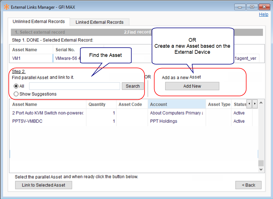 Both files are used by the GFI MAX Links manager in | Both files are used by the GFI MAX Links manager in RangerMSP client to link GFI MAX Sites and Devices to equivalent RangerMSP Accounts and Assets. | ||