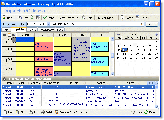 Dispatcher window in CommitCRM