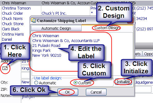 - Once you have the Shipping Label window, click the Custom Design tab, click the Initialize button, and edit the Label.