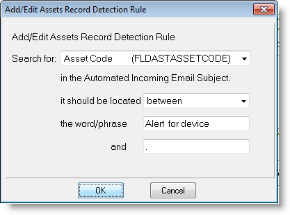 • Search for - RangerMSP can find the matching Asset for an incoming email by searching for: