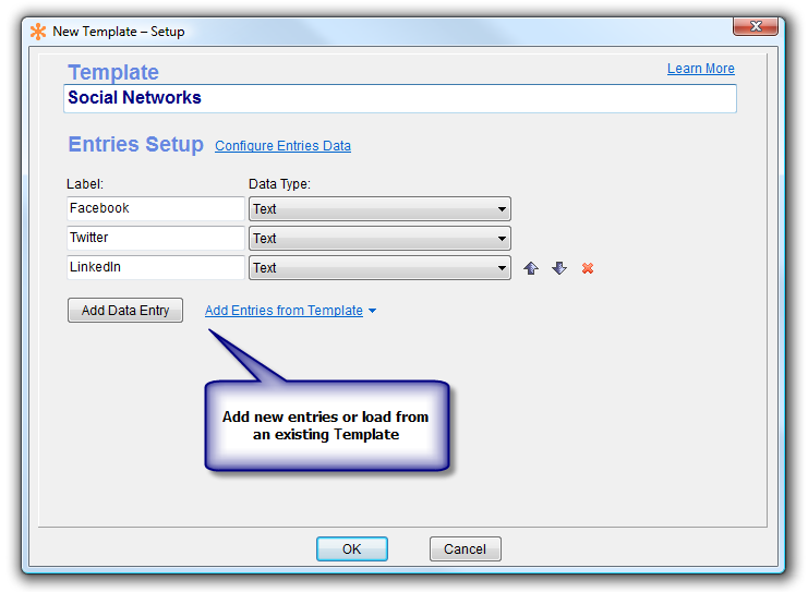 3. Add entries via the Add Data Entry button or add a bunch of entries from an existing template using the Add Entries From Template option.