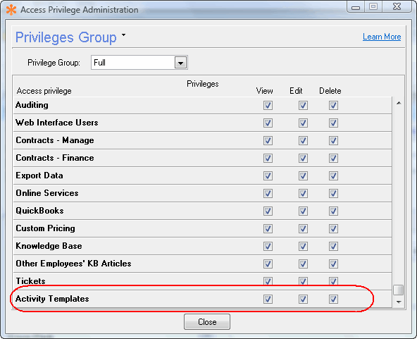 In order to apply, create, or edit Activity Templates, users must be assigned certain privileges. The RangerMSP system allows for different levels of privileges for Activity Templates.