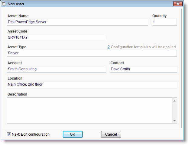- New Assets can be created based on Devices managed by your RMM system, click here to learn more about RangerMSP’s integration with RMM systems.
