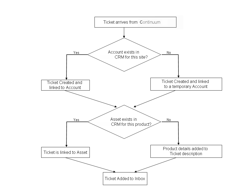 The Ticket is then created and linked to this automatically created Account. New Continuum Tickets will also be linked to this Account as long as a permanent Account is not created for this Site.