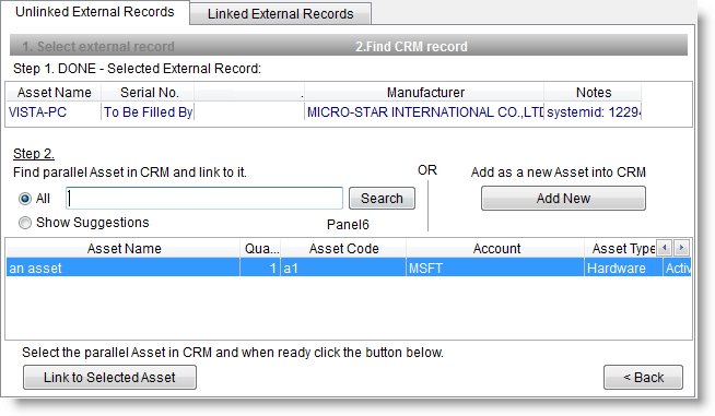 - In the Window which opens hit the Linked External Records tab to find Assets which are already linked.