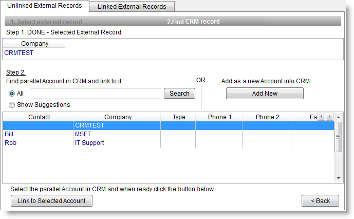 - In above screen you should choose the RangerMSP Account to be linked to the external record: