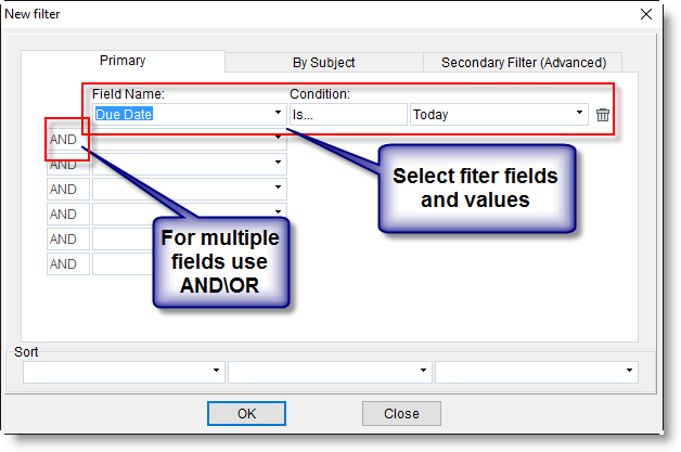 4. You can use the By Subject and Secondary Filter options. See more details below.