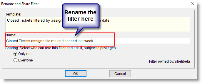 Once a filter is saved, you can rename it by using a special option. To rename a filter: