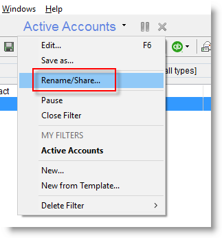 Filters can be shared so that other users can enjoy the already defined filters. When saving the filter for the first time, you can also set the sharing options in the new filter window. See Saving Filters for more details.