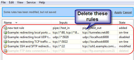 Once you've installed TunnelEx, Right Click and delete all the example rules so that the list is empty.