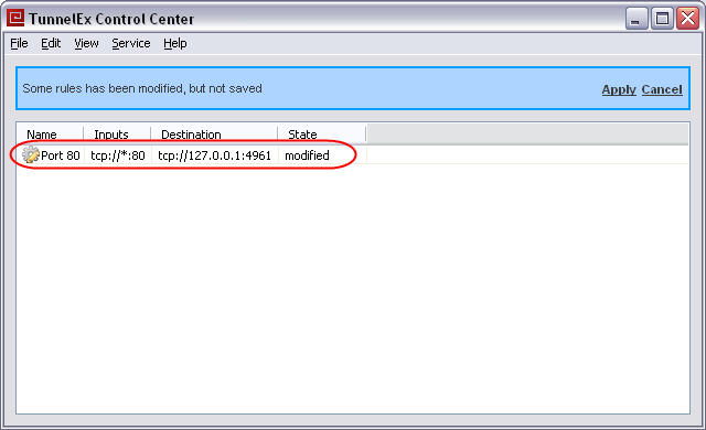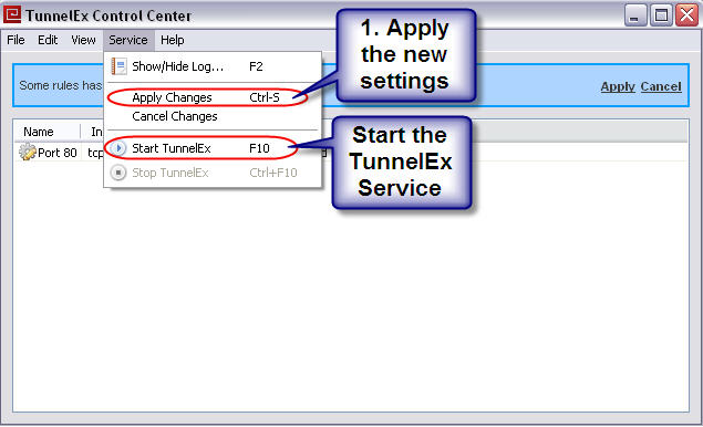 The last step is to apply the new rule, and Start the service from the Service Menu.