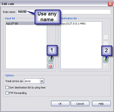Once the list is empty, go to File > New, and create a new rule that will transfer all information from port 80 to port 4961, so that the RangerMSP Web Interface will receive the normal browsing traffic on its own port.