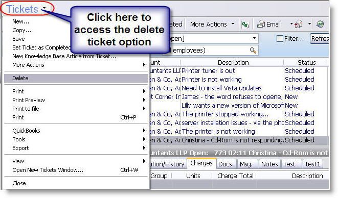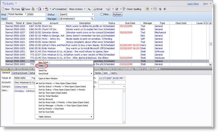 The following will show you how to copy a ticket to a different account, even if it already has additional database entries (Charges, Documents, Messages, History Notes, Appointments, Tasks, etc.) created for the service ticket. The following method will work for all tickets, even if they’re already closed.