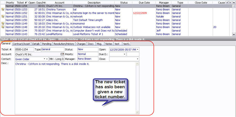 Once all the steps have been followed, you should now have a new ticket with all the entries and info that has been accumulated during the lifetime of the original ticket. All that’s left to do is mark the new ticket as closed, if needed. Also, at this point, you have the option to delete the original ticket that you copied to the new account; however, be sure to locate the older ticket first, in order to make sure you don’t delete the new ticket.
