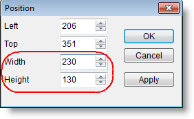 (Note: These dimensions are in Screen Pixels. The Report Designer units can be set from Reports menu > Units.)