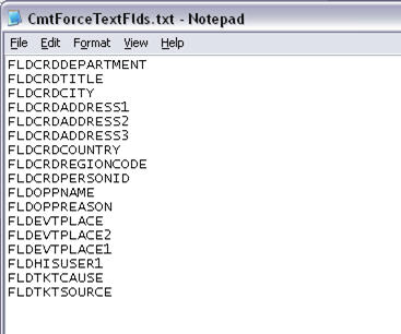 • Note that the name of this file must be as listed above: CmtForceTextFlds.txt