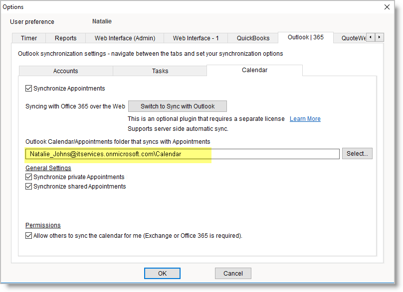 Each user should select the Office 365 calendar folder to sync with. Each Office 365 calendar folder can only be synced with a single RangerMSP employee user calendar. A user can allow other users to sync their calendar.