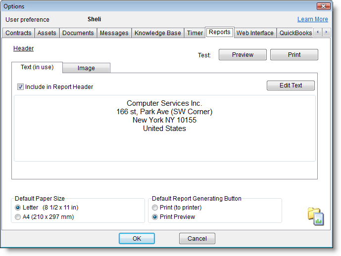 The Reports Preferences window allows you to adjust global options available in the system. Any of the settings configured in this window will only take effect once RangerMSP has been restarted on that computer.