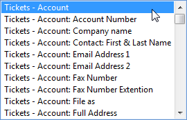Each report has a pre-defined list of available fields according to the report pre-defined design. In most cases, the main category fields are available (e.g. Ticket fields for a Ticket report, Charge fields for a Charge report, Account fields for all reports, etc.), and you may have some select fields from other categories as well (e.g. some based Account fields in a ticket report).
