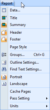 The Report Designer'sReports Menu is a layout control menu which can toggle parts of your layout to be shown or hidden. Report Sections are parts of the report that are separate from other parts. some sections such as Header, Footer, and Summary have their own static purposes, while other miscellaneous groups such as Group1, Group2, Etc. can be used to display any static or database information you like.