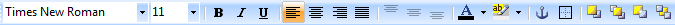This toolbar looks familiar enough, they can be used to reformat your text and control the object depth. The items in the toolbar are as follows (By order of Left to Right):