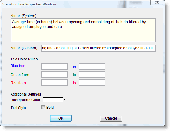 This window can also be access from the Statistics Board Settings window when clicking Properties for each Statistics Line.
