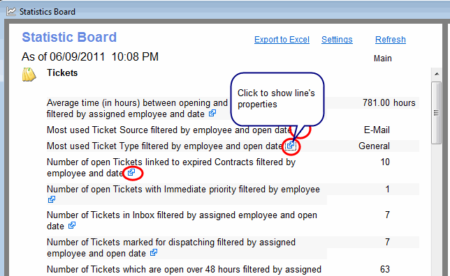 The RangerMSP Statistics Board provides a quick access to advanced queries providing summary or statistical information regarding your business. The queries results can help you keep track of the different measures of your business.