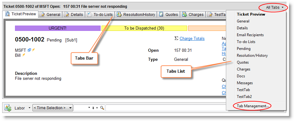 1. Open the Tab Management window (Tickets > Tools > Tab Management for example).